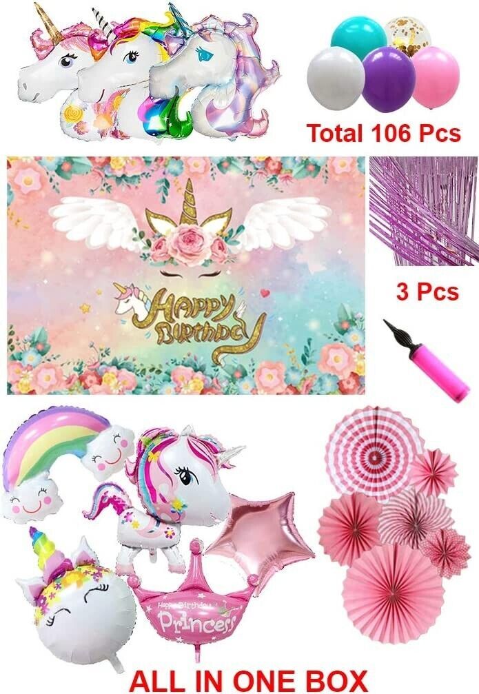 We have all right decorations for your unicorn party needs in the box. And Save your time and money through buying all party decorations in a box.