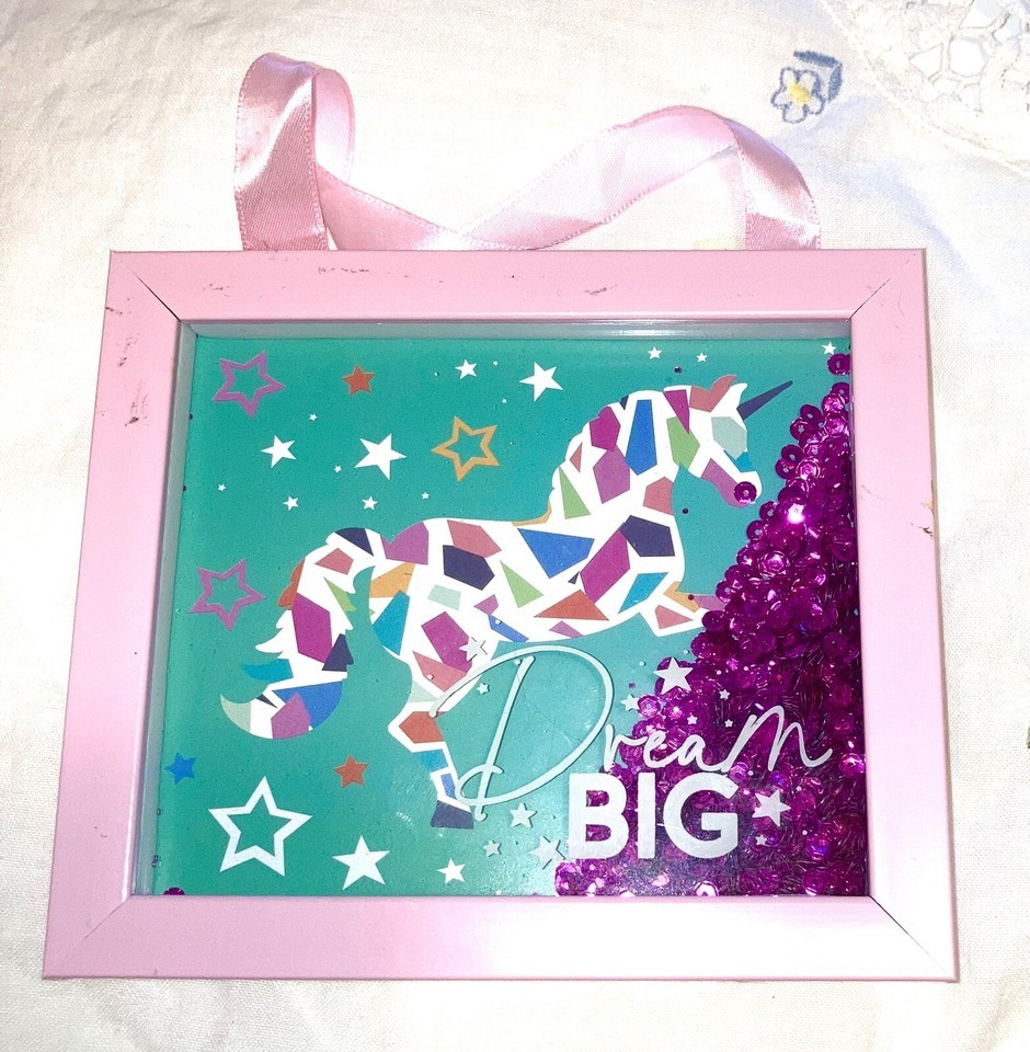 - UNICORN PINK DREAM BIG SPARKLY INSPIRATIONAL wall HANGING