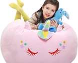 - Unicorn Stuffed Animal Toy Storage, Kids Bean Bag Chair Cover Only, Velvet Extra