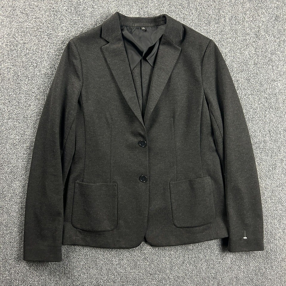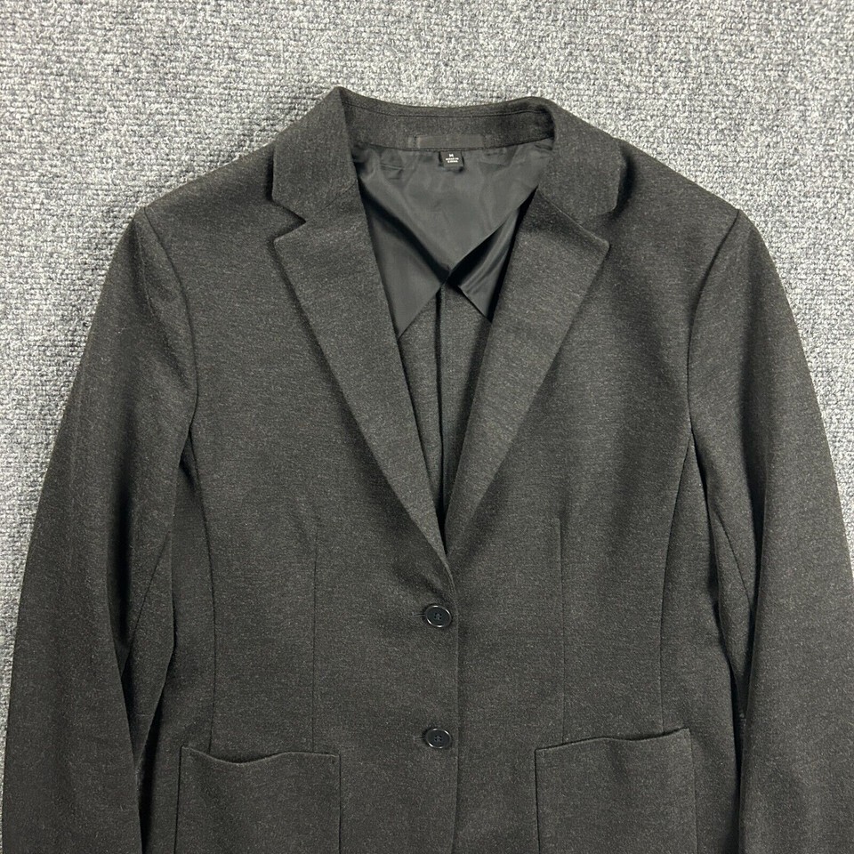 - Uniqlo Blazer Womens Medium Gray Jacket Coat Pockets Polyester Blend