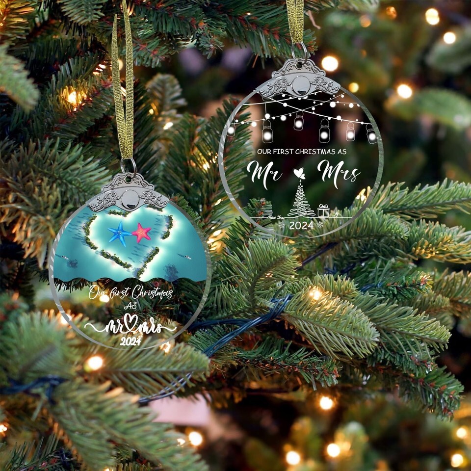 - Unique 2024 Crystal Glass Wedding Ornament Mr and Mrs Gift for Couples