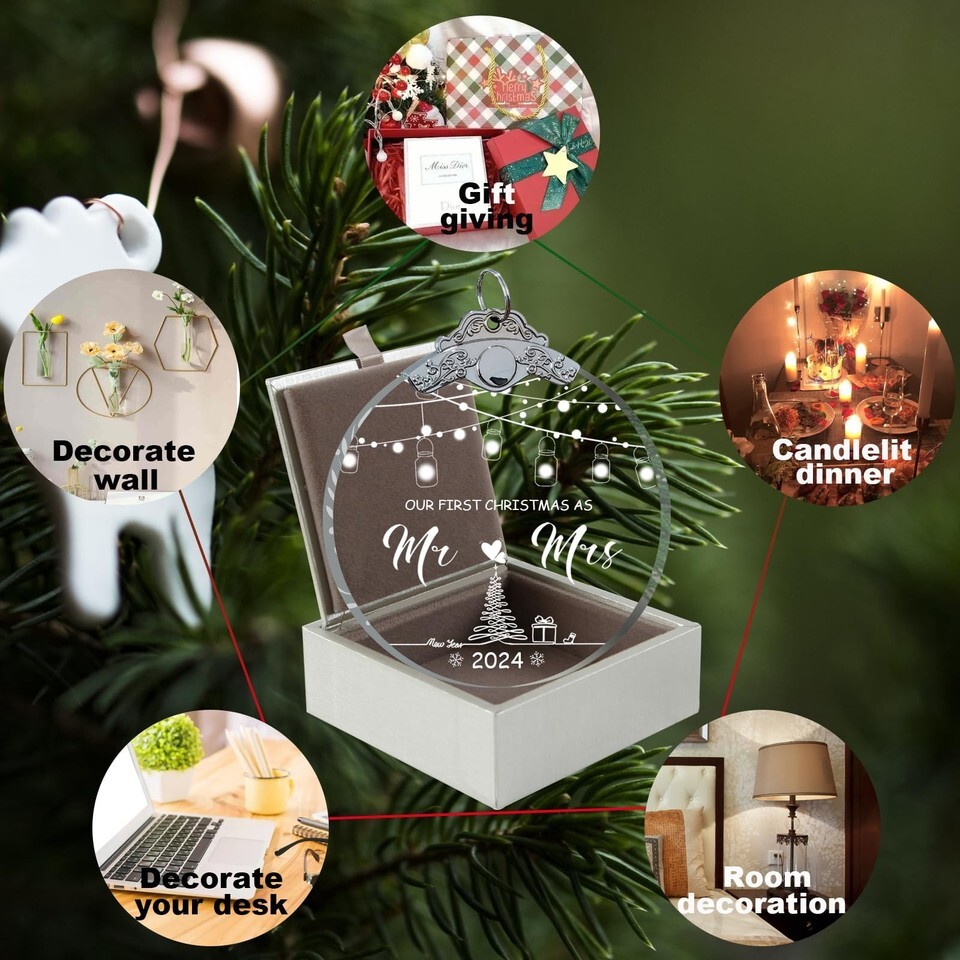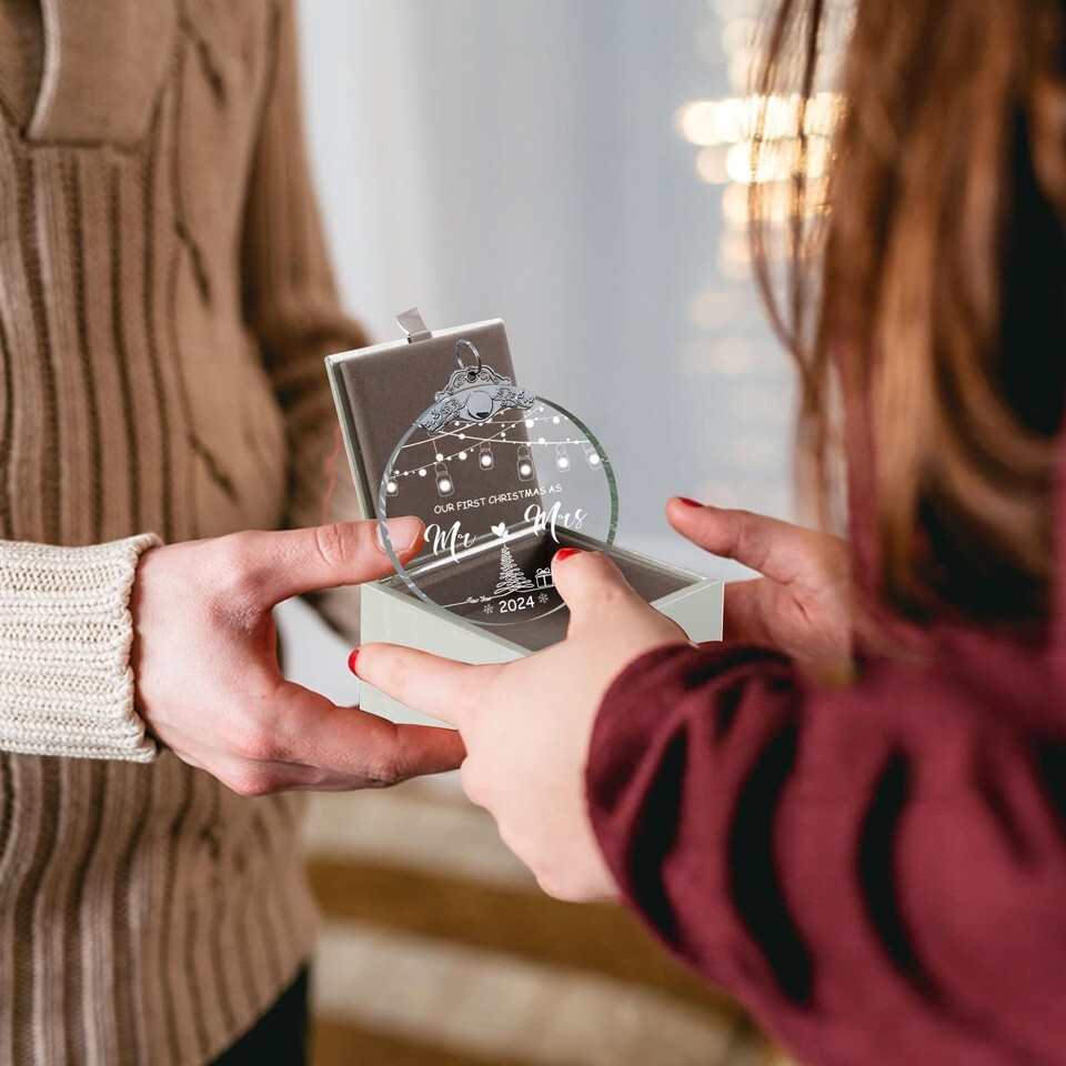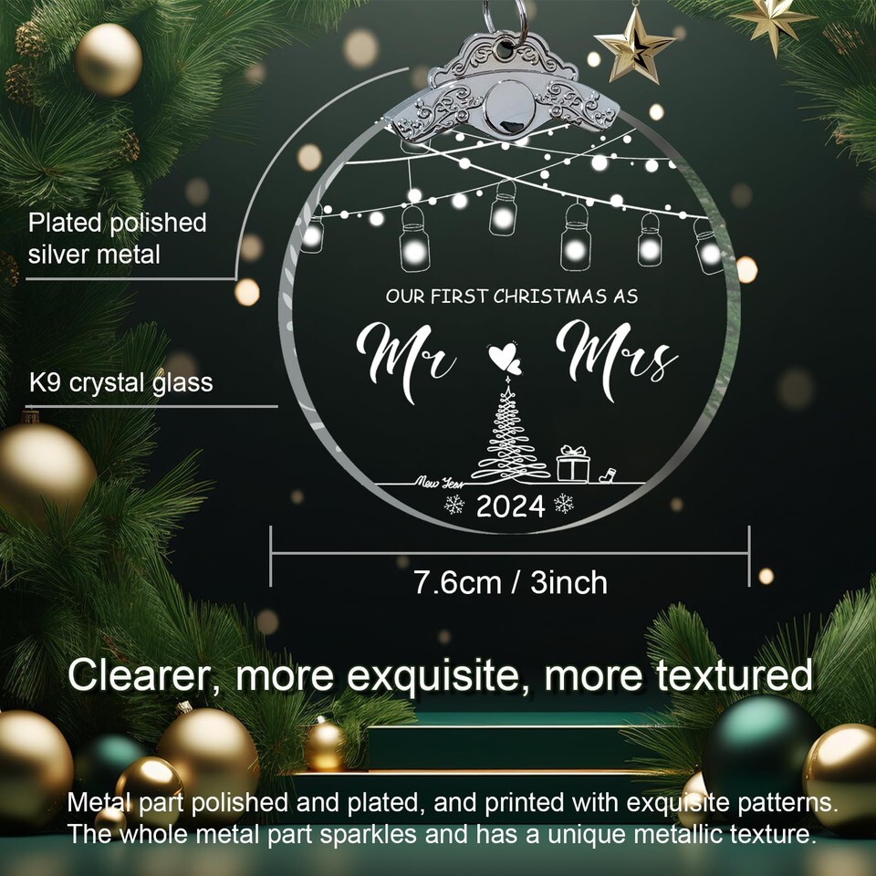 Unique 2024 Crystal Glass Wedding Ornament Mr and Mrs Gift for Couples
