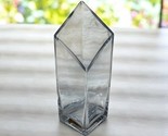 Unique Clear Thick Glass Vase Square Base Diagonal Cut Rim Geometic Contemporary Heavy