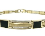 Type: BraceletWeight: 7.5Karat: 10ktMetal: Yellow GoldGender: UnisexStyle: FancySize / Length: 8"Owner applied: 10kStone 1 quantity: 9Stone 1 shape: OtherStone 1 color: BlackStone 1 weight (total): 5.31Stone 1 type: OnyxThickness: 5.3mmCondition:Used
