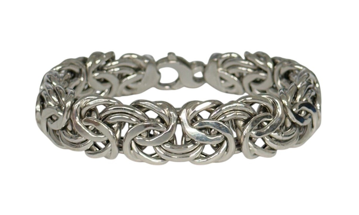 Type: BraceletWeight: 27.9Karat: 14ktMetal: White GoldGender: UnisexStyle: ByzantineSize / Length: 8.5"Owner applied: 14kt italyWidth: 15.5mmCondition:Used