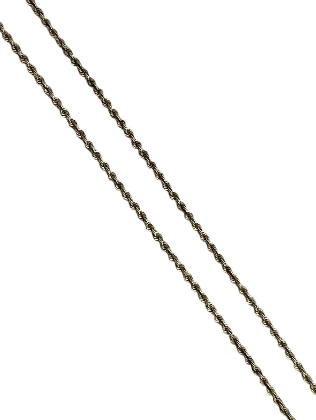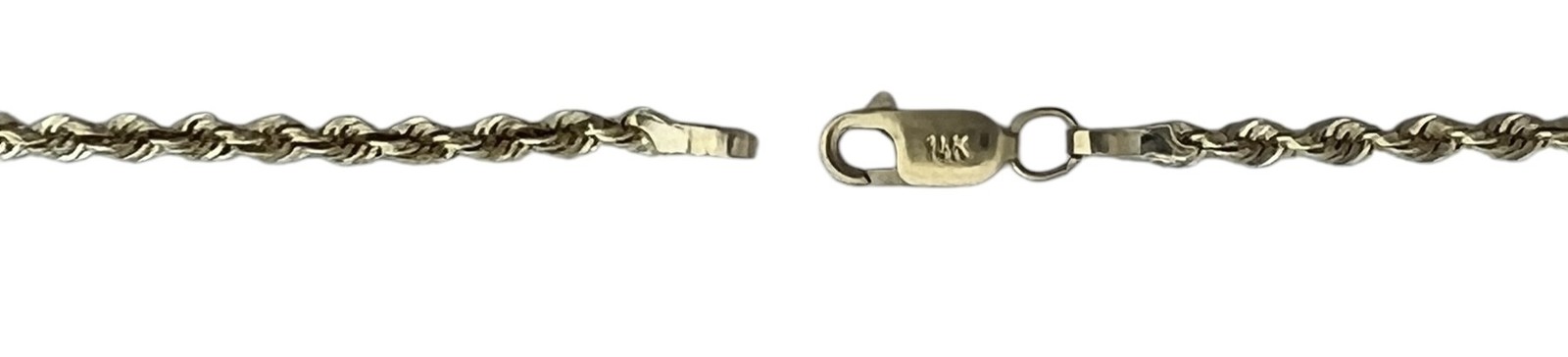 Type: ChainWeight: 3.4Karat: 14ktMetal: Yellow GoldGender: UnisexStyle: RopeSize / Length: 18"Owner applied: 14kCondition:Used