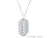 Unisex Dogtag Cubic Zirconia CZ Crystal Pave Pendant Chain Necklace in .925 Sterling Silver