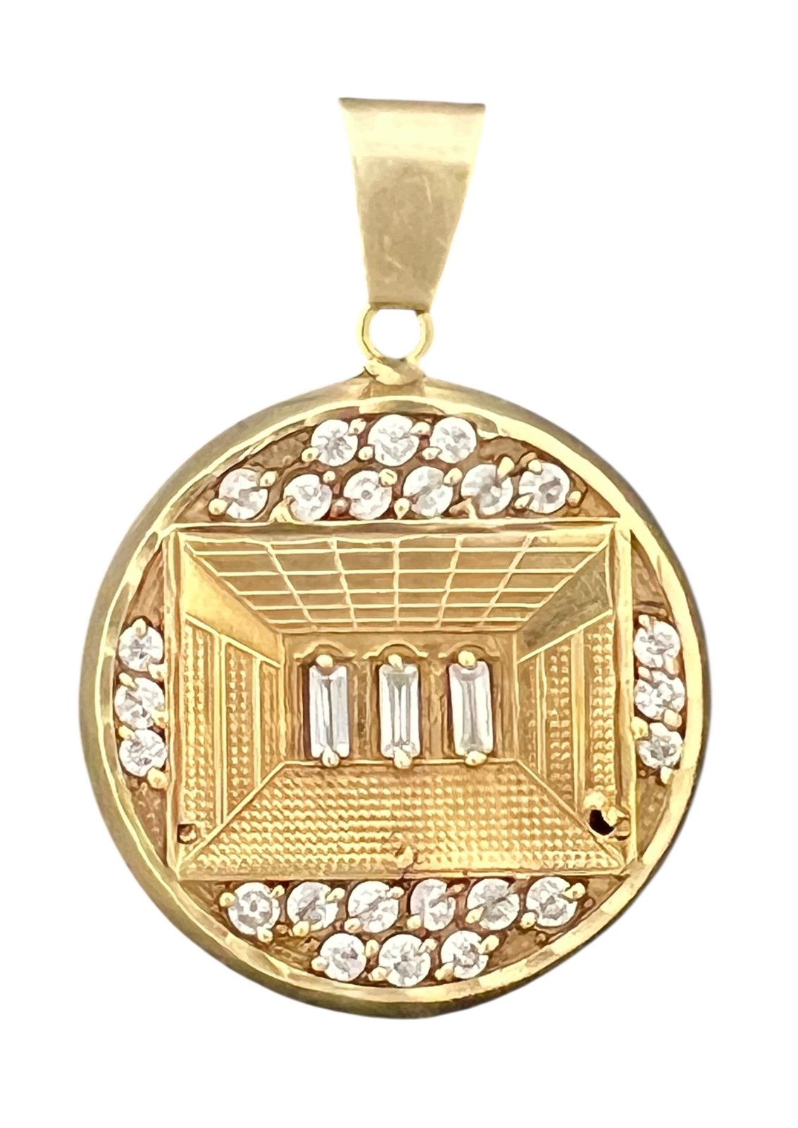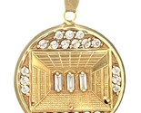 Type: PendantWeight: 3.3Karat: 10ktMetal: Yellow GoldGender: UnisexStyle: ReligiousSize / Length: 1.5"Owner applied: 10kStone 1 quantity: 3Stone 1 shape: BaguetteStone 1 color: ClearStone 1 weight (total): .15Stone 2 Quantity: 24Stone 2 Shape: RoundStone 2 Color: ClearStone 2 Weight (Total): .72Stone 1 type: Cubic ZirconiaStone 2 Type: Cubic ZirconiaCondition:Used