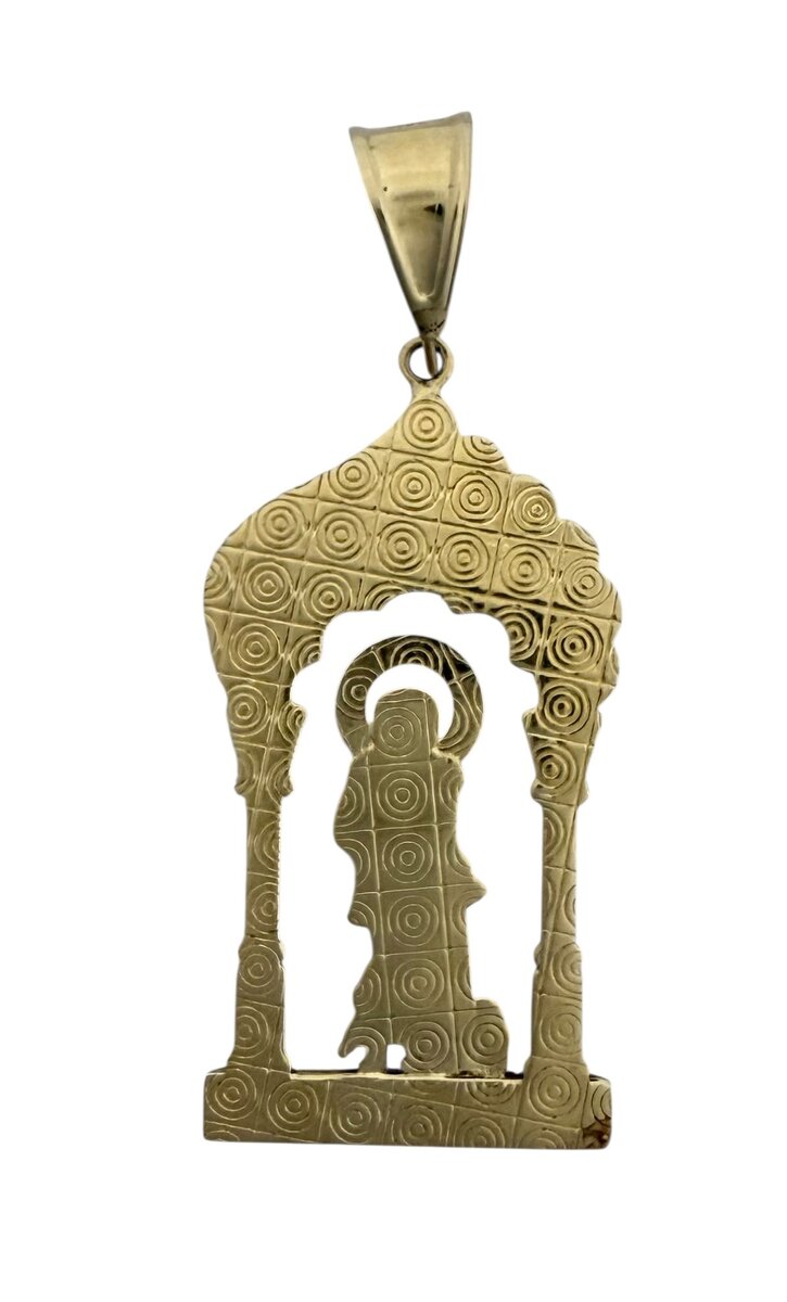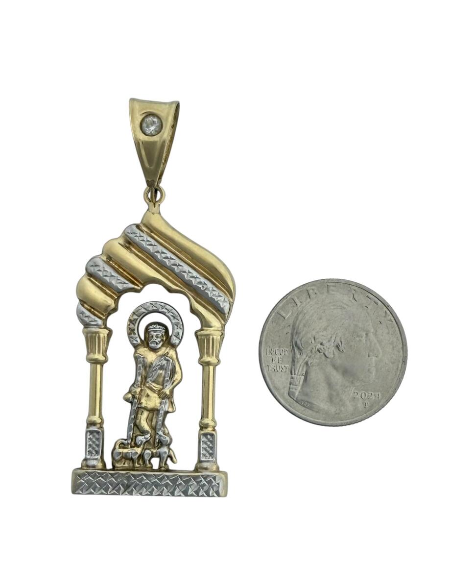 Type: PendantWeight: 3.3Karat: 10ktMetal: Yellow and White GoldGender: UnisexStyle: ReligiousSize / Length: 2.5"Owner applied: SYL 10KStone 1 quantity: 1Stone 1 shape: RoundStone 1 color: ClearStone 1 weight (total): .10Stone 1 type: Cubic ZirconiaCondition:Used