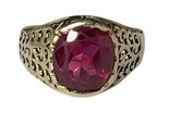 Type: Solitaire ringWeight: 2.6Karat: 14ktMetal: Yellow GoldGender: UnisexStyle: SolitaireSize / Length: 9Owner applied: N/AStone 1 quantity: 1Stone 1 shape: OvalStone 1 color: RedStone 1 weight (total): 3.0Condition:Used