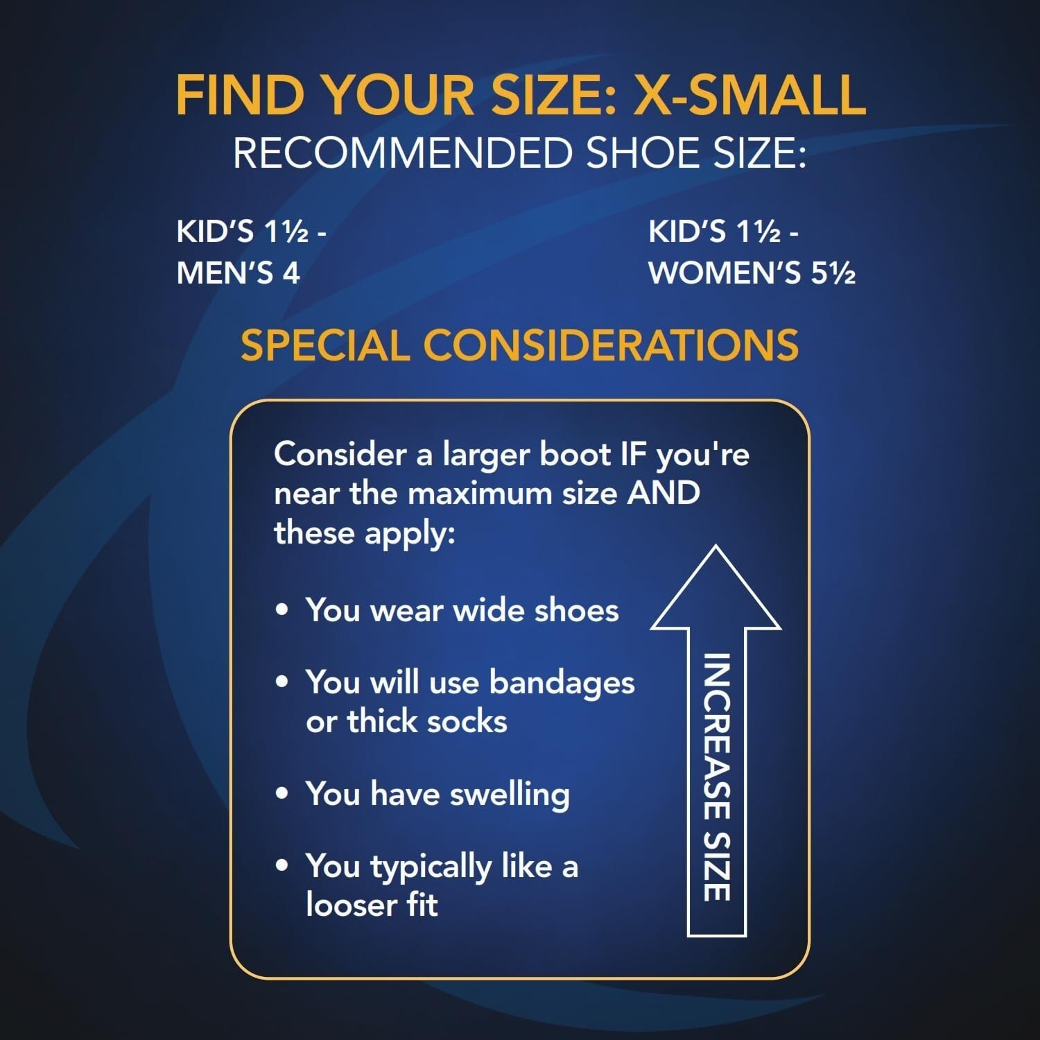 BEFORE PURCHASING please view our sizing chart (second image). Size Extra Small fits kid's 1.5, men's 4 and women?s 5.5 shoe size. Size Extra Small weighs 2.0 pounds and can be worn on the left or right foot