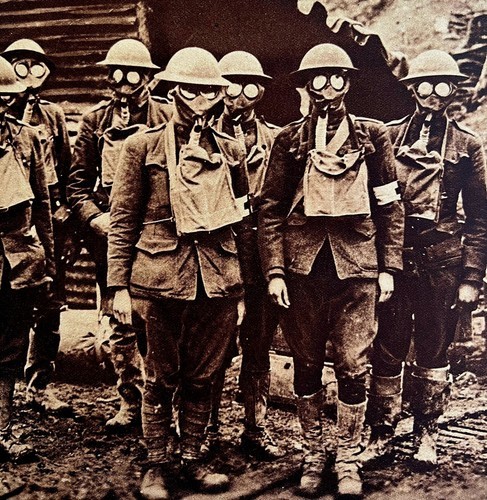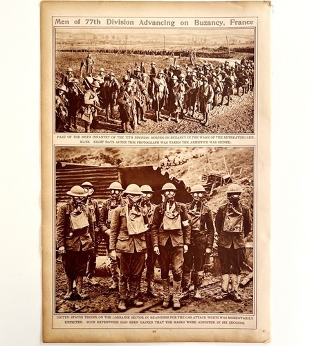 - United States Soldiers In Gas Masks Lorraine 1920s WW1 Battle Military GrnBin1