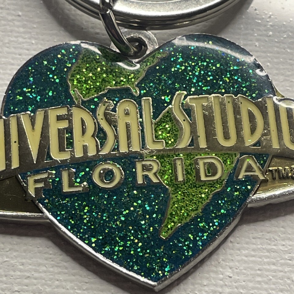 - Universal Studios Florida Green Sparkle Heart Shaped Earth Keychain