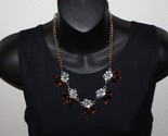 Unsigned Chunky Gold Tone Faux Tortoise Pearl Rhinestone Necklace 18"+