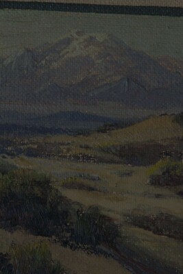 Fred Grayson Sayre (1879-1939). Un illustrateur tres reussi qui est devenu plus tard l'un des peintres paysagistes du desert les plus connus de Californie, Fred Grayson Sayre est ne a Medoc, Missouri. Sa seule formation en art officielle a ete de plusieurs mois avec le portraitiste J. Laurie Wallace a Omaha, Nebraska. Sayre a d'abord travaille dans les mines plomb et zinc et avec des articles en cuir, puis determines a devenir artiste. Il a pris un travail de gravure a Houston, au Texas, puis a demenage a Chicago où il a obtenu une distinction en tant qu'illustrateur. Un combat presque mortel de diphterie a change sa vie lorsque les medecins l'ont persuade de demenager en Californie. En 1916, il a voyage en train a travers le sud-ouest et a ete enchante par les paysages du desert. De 1919 a 1922, Fred a vecu et peint en Arizona, travaillant egalement comme comptable la nuit pour une entreprise miniere. Il est retourne en Californie en 1922 et s'est finalement installe a Glendale, prosperant dans le climat de l'Occident. La meme annee, il a tenu sa premiere exposition d'art a San Francisco. Fred Grayson Sayre etait un membre fondateur du Club des peintres et sculpteurs de Los Angeles, en tant que president en 1929. (Source:Calart)