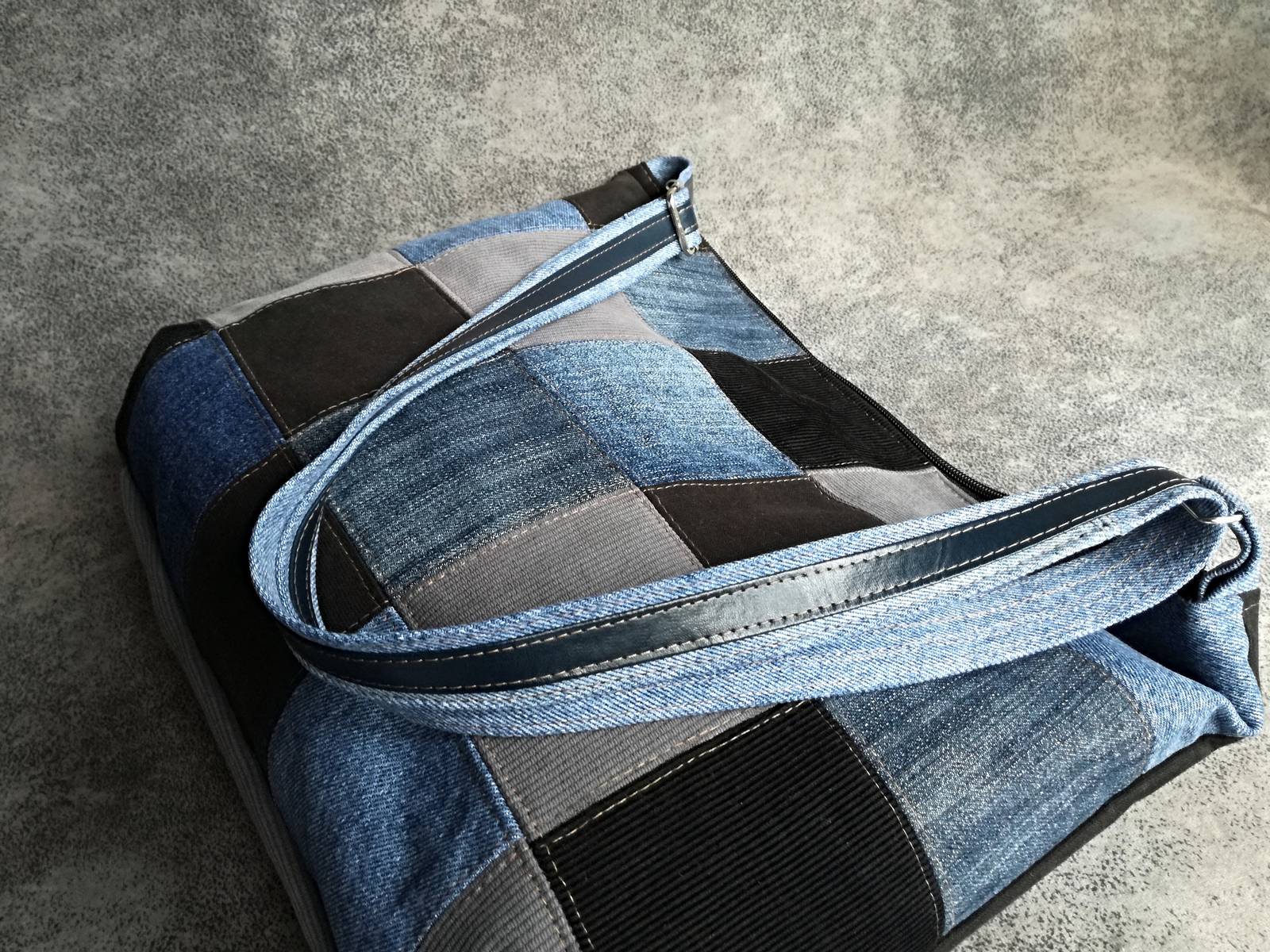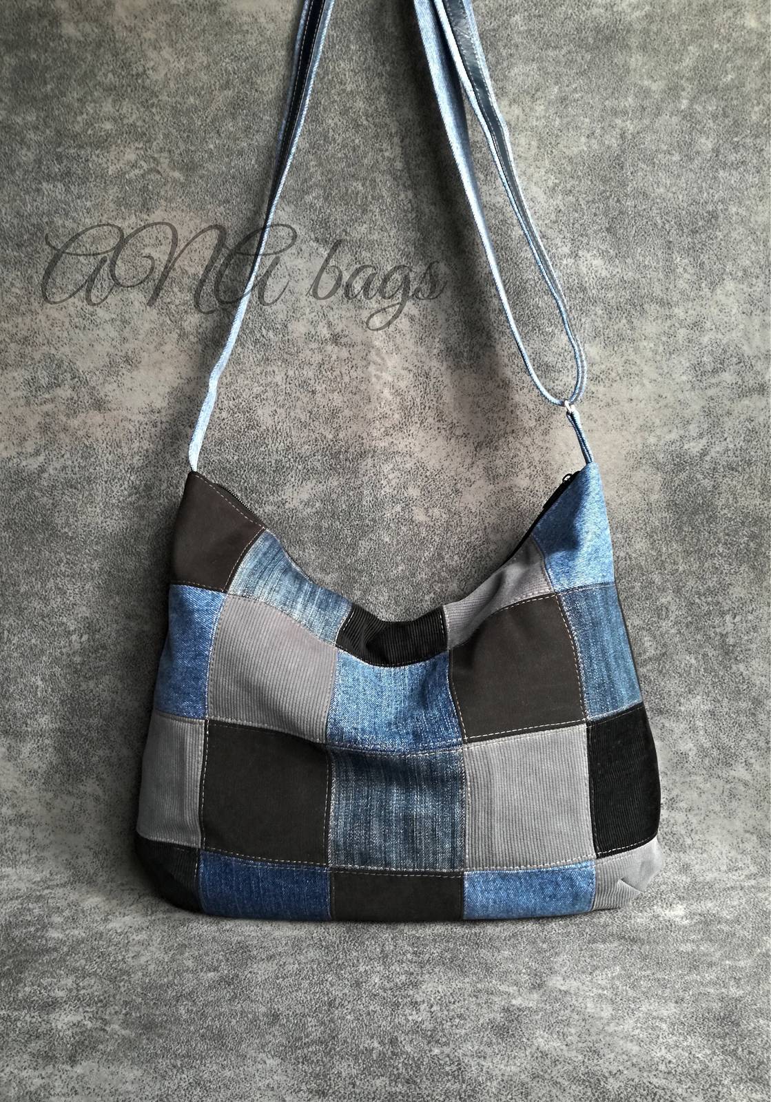 - Upcycled Denim Crossbody Bag: Patchwork Jean Purse with Zipper