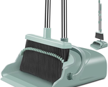 Upgrade Broom and Dustpan Set, Large Size and with Long Handle, Upright,Ideal for Indoor Outdoor Garage Kitchen Room Office Lobby Use (Green)