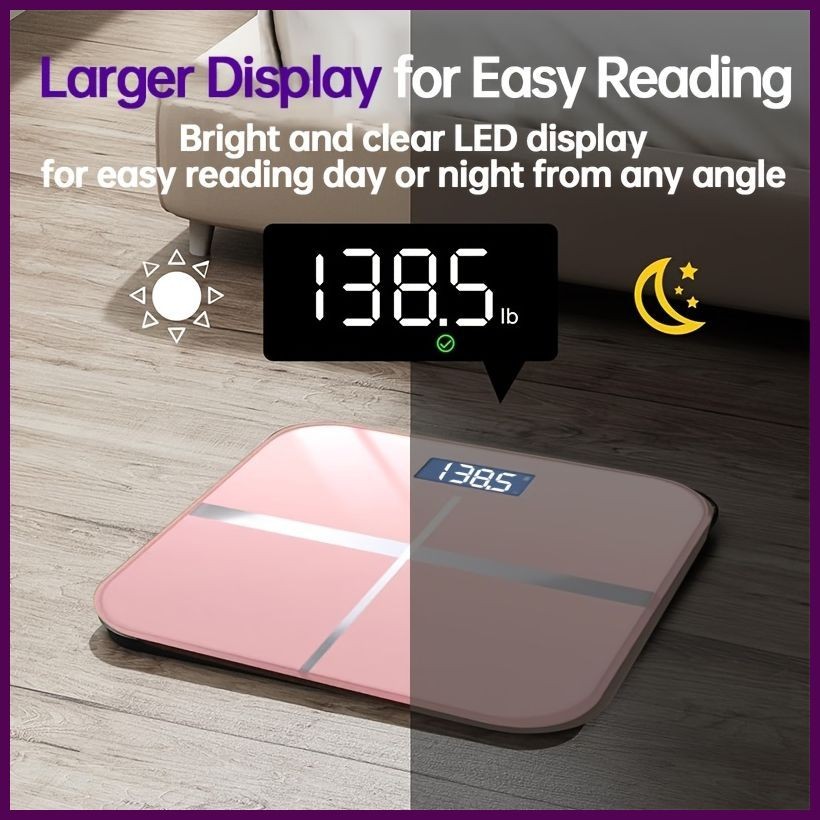 This high-precision digital bathroom scale is designed for accuracy, durability, and modern convenience. With an enlarged 2626cm (10.2410.24in) tempered glass platform and extra-high 400LB capacity, it?s perfect for the whole family.
