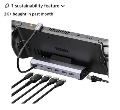 The JSAUX Upgraded Docking Station is a versatile accessory designed for use with various gaming devices such as Steam Deck, ROG Ally, and Legion Go. With a high wattage of 1E+2 and 6 different ports including Ethernet, HDMI, and USB 3.0, this docking station allows for seamless connectivity to enhance your gaming experience. The sleek design, compact dimensions, and lightweight construction make it easy to use and transport, while the 4.9/5 customer reviews ensure its reliability and quality. Made in the United States, this docking station is a must-have for gamers looking to expand their setup.