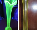 - Uranium Glass Vase 12.5" Yellow Twist Lily Lilly Jack in the Pulpit Hand Stretch