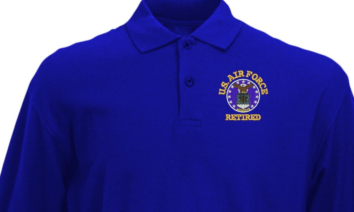 - US AIR FORCE EMBROIDERED Long Sleeved POLO SHIRT USAF RETIRED