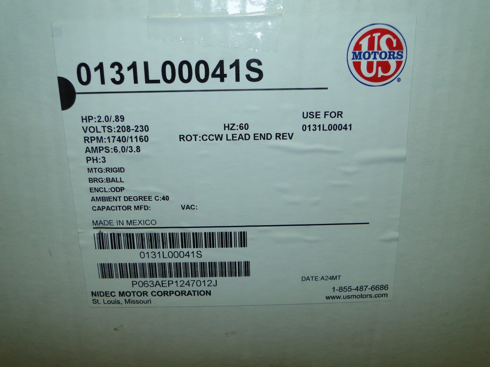 The US MOTORS 0131L00041S is a blower motor commonly used in HVAC systems, especially in Goodman and Amana equipment. It operates at 208-230V, 60Hz, delivers 2 horsepower, and runs at 1740 RPM. This model is belt-driven and suited for commercial or industrial HVAC applications where a robust and durable motor is required.