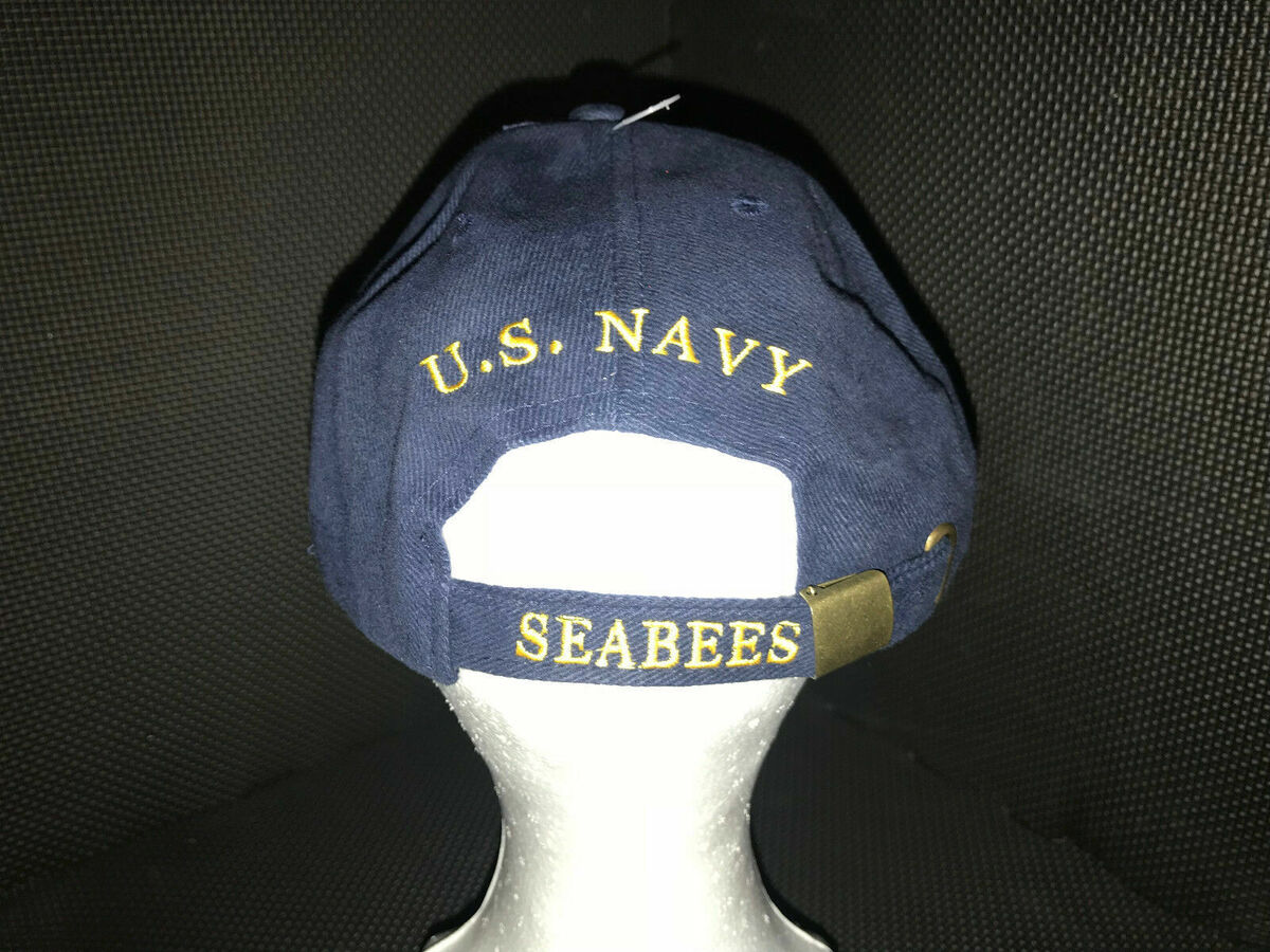 - US NAVY DARK BLUE EMBROIDERED NAVY SEABEES STRAPBACK HAT CAP