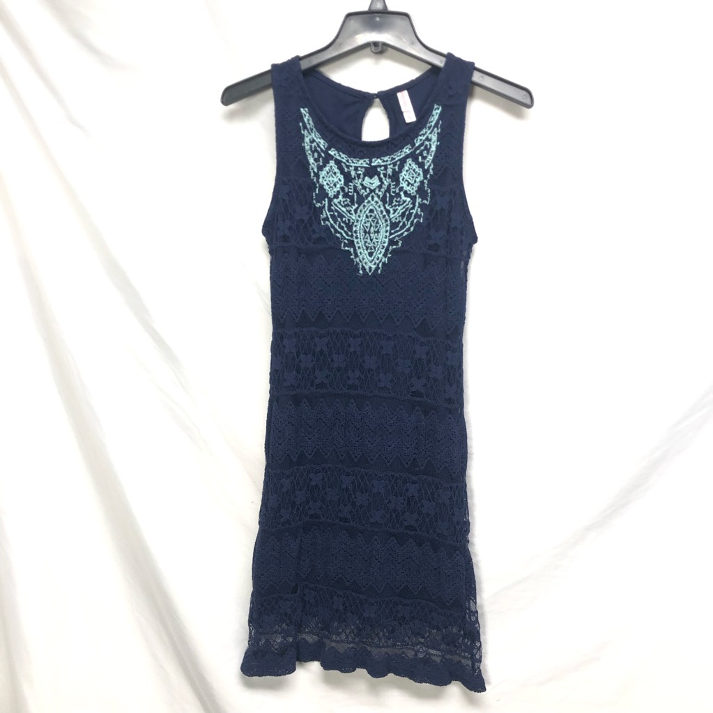 Used 1 time XHILARATION women's Shift LACE DRESS sz S blue Lined Party Coctail