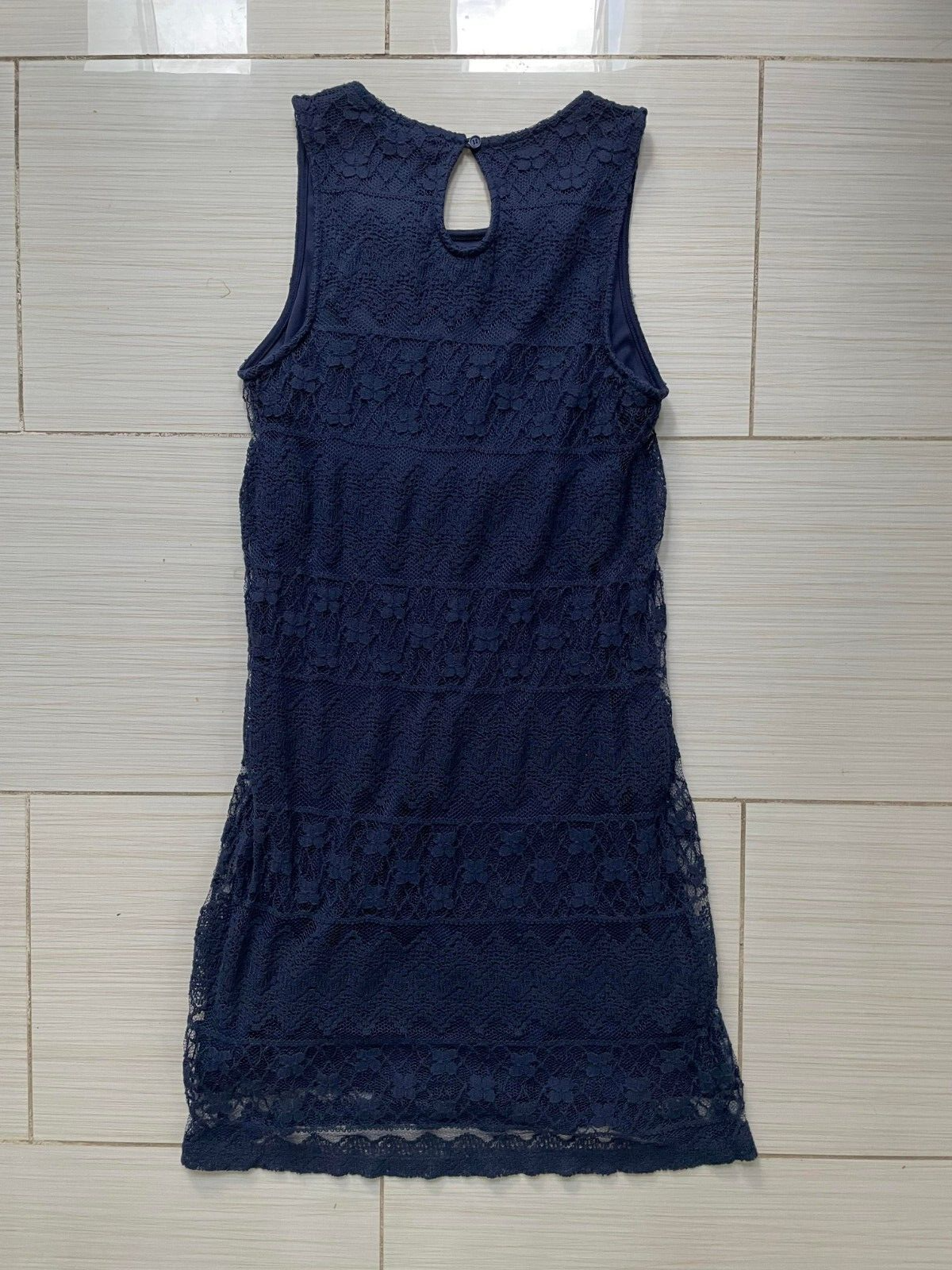 - Used 1 time XHILARATION women's Shift LACE DRESS sz S blue Lined Party Coctail
