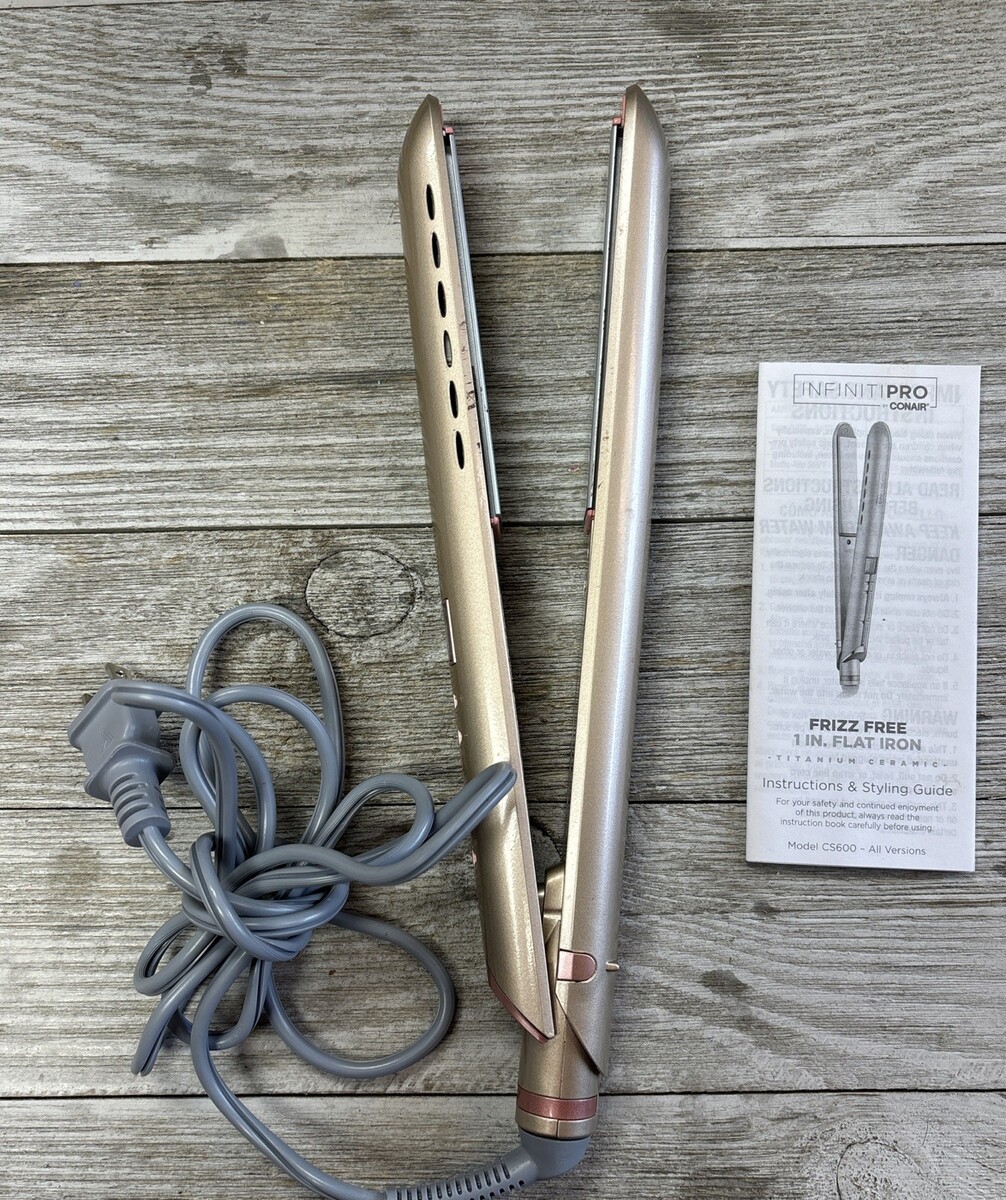 - Used~Conair Infiniti Pro Frizz Free 1 in. Flat Iron Titanium Ceramic Rose Gold