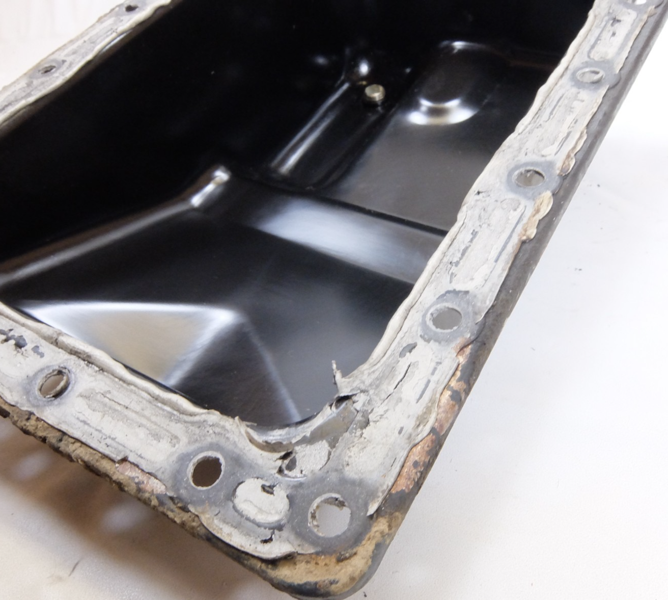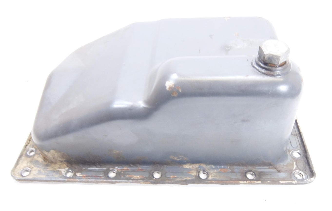 This is a used oil pan that was removed from the tractor below. The oil plug is included. The pan will need to be de-gasketized.