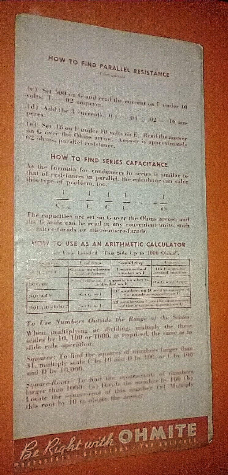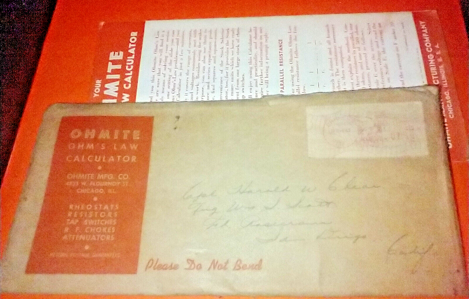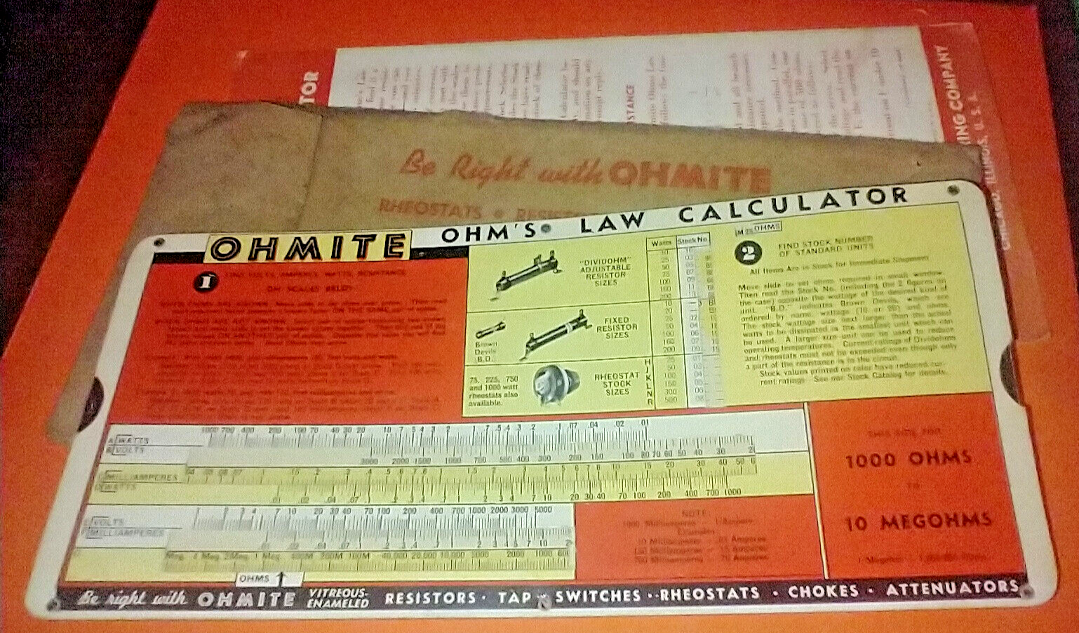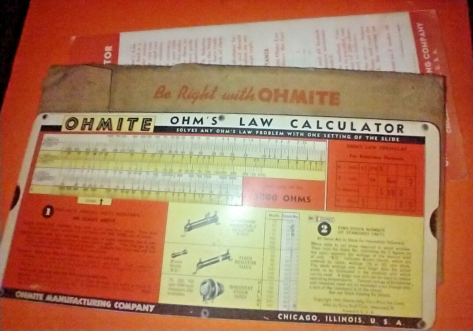 - USED!! OHMITE OHM'S LAW CALCULATOR IN ORIGINAL 1943 ENVELOPE, FREE SHIPPING US!!