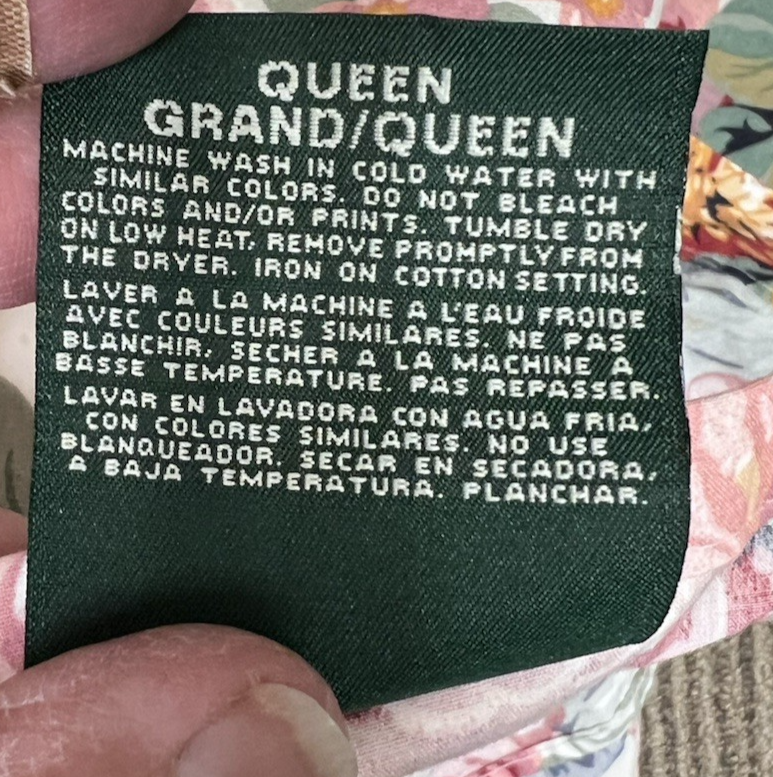 Used Ralph Lauren QUEEN Sized Dust Ruffle Skirt Allison Floral w Blue Bows
