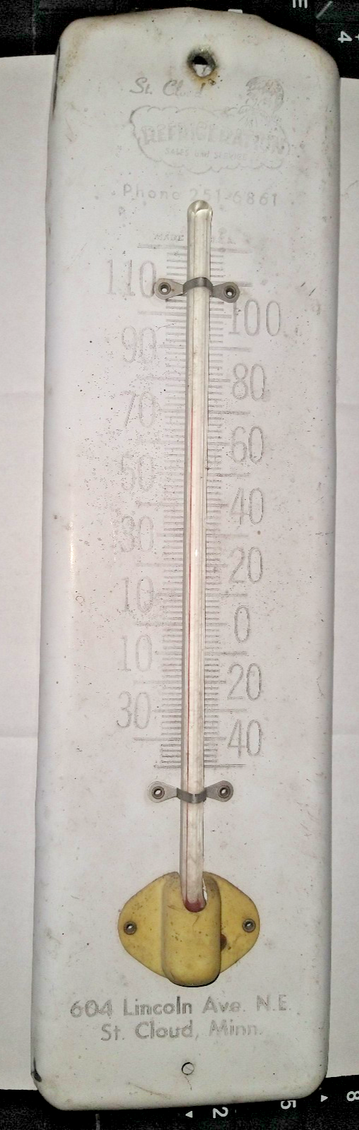 - USED!! Vintage!! 11 11/16" Tin Thermometer, ST. CLOUD MN FREE SHIPPING US ONLY!!