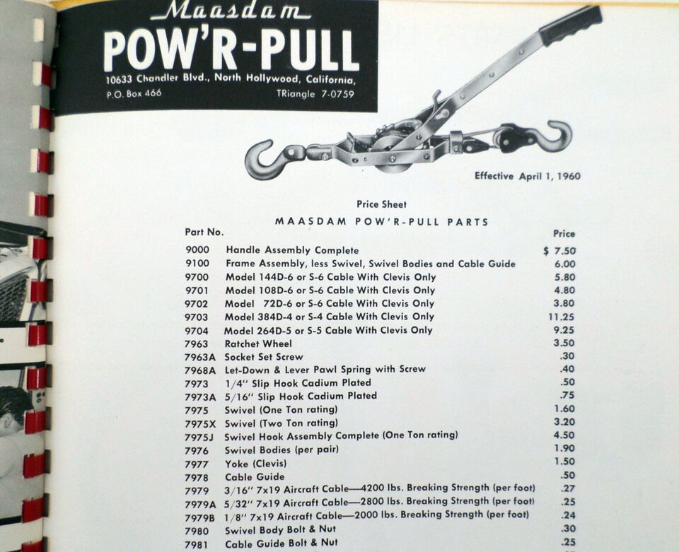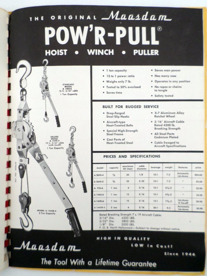 Users Manual: The Original Maasdam Pow'r Pull Hoist Winch Puller Illustrated Model A1445B-6 1961