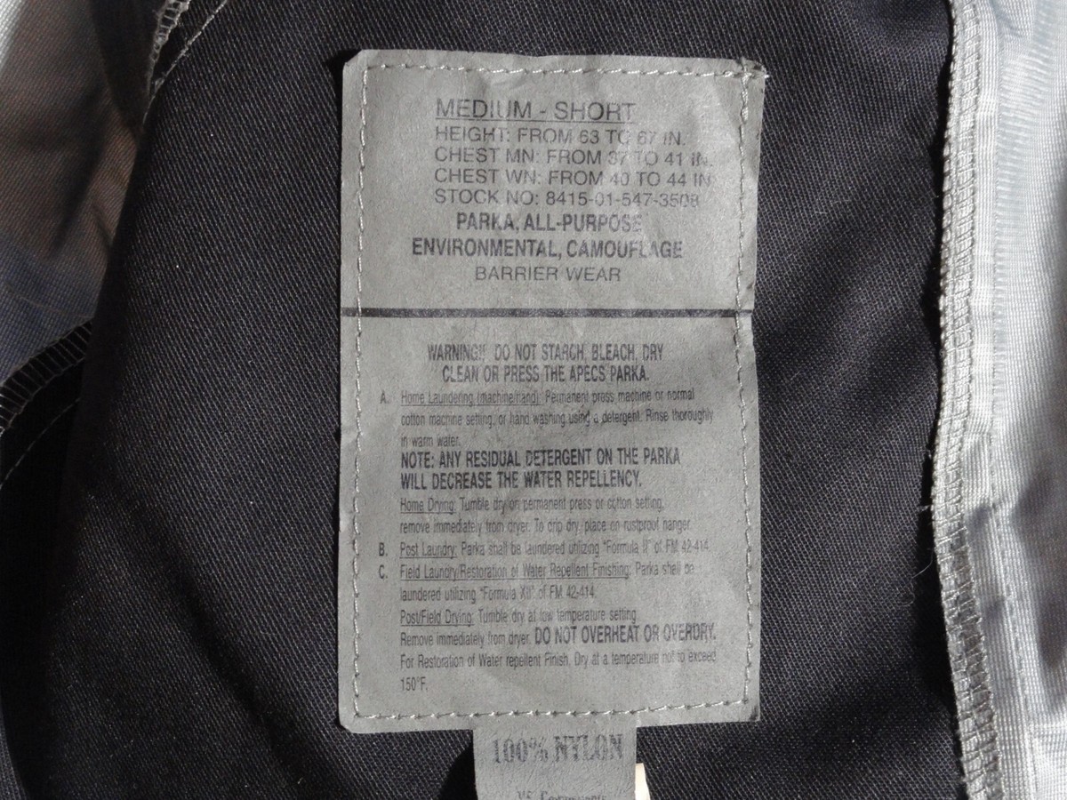 - USGI GORE-TEX ALL PURPOSE ENVIRONMENTAL APECS TIGER STRIPE ABU USAF PARKA MS