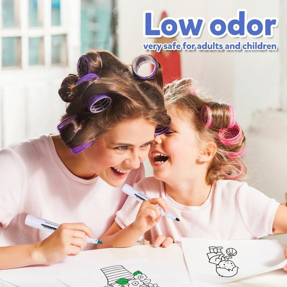 Safe material: Our dry-erase markers are low odor, xylene-free, environmentally friendly, and the ink is also made of safe material. Suitable for both adults and children.