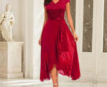 - V Neck Spring Patchwork Ruffles Chiffon Irregular Dress