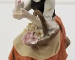 - VC) Vintage Country Girl with Flower Basket on Stump Ceramic Figurine 6" Tall