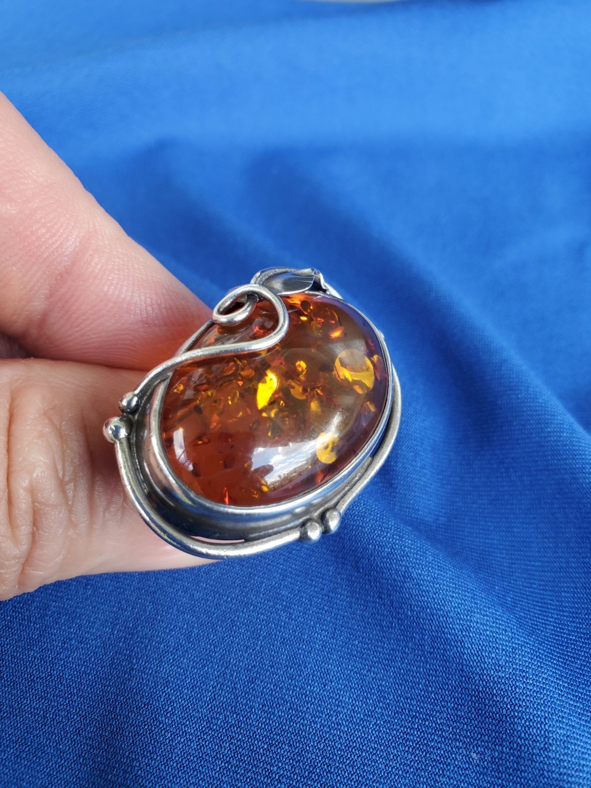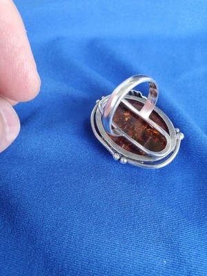 - VERY LARGE Authentic Designer Baltic Amber Hand made 925 Sterling Silver RING