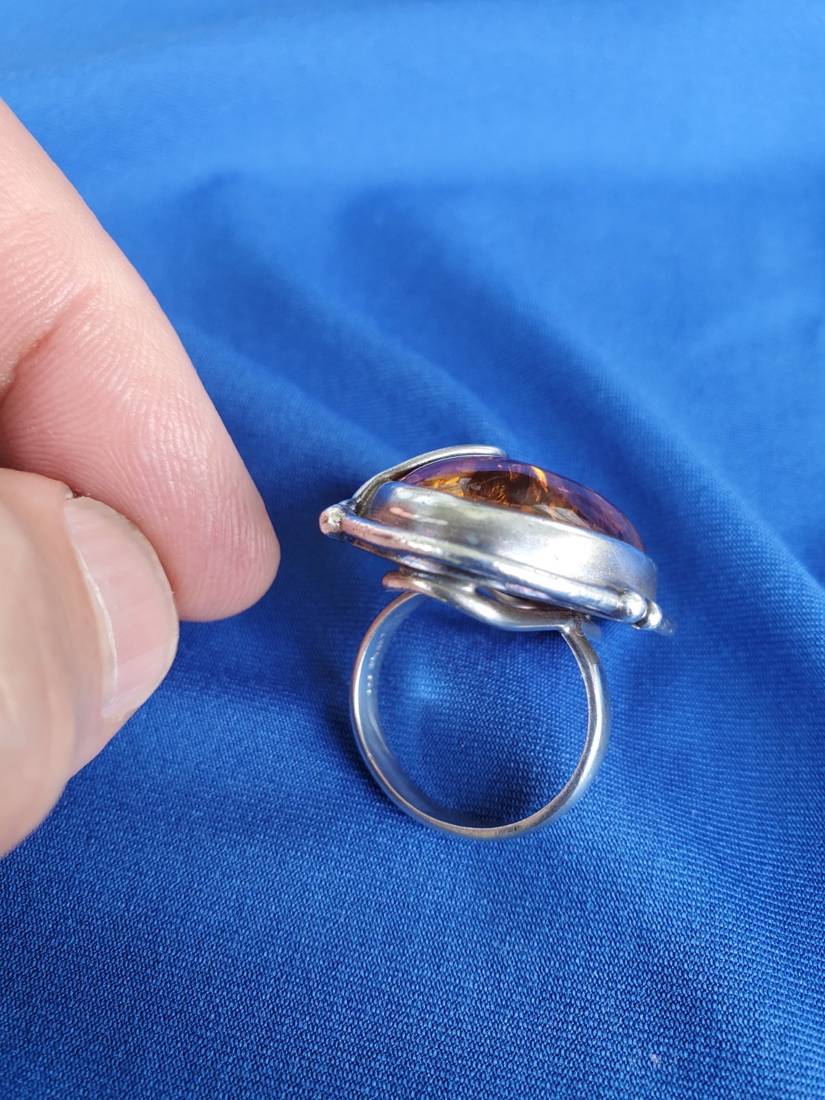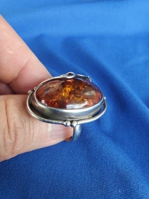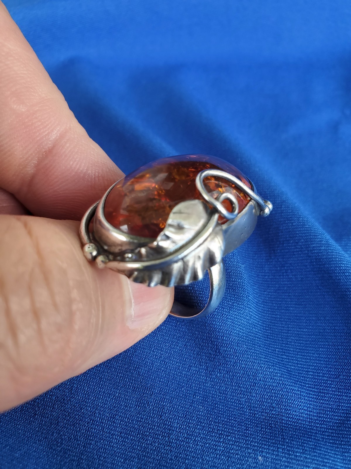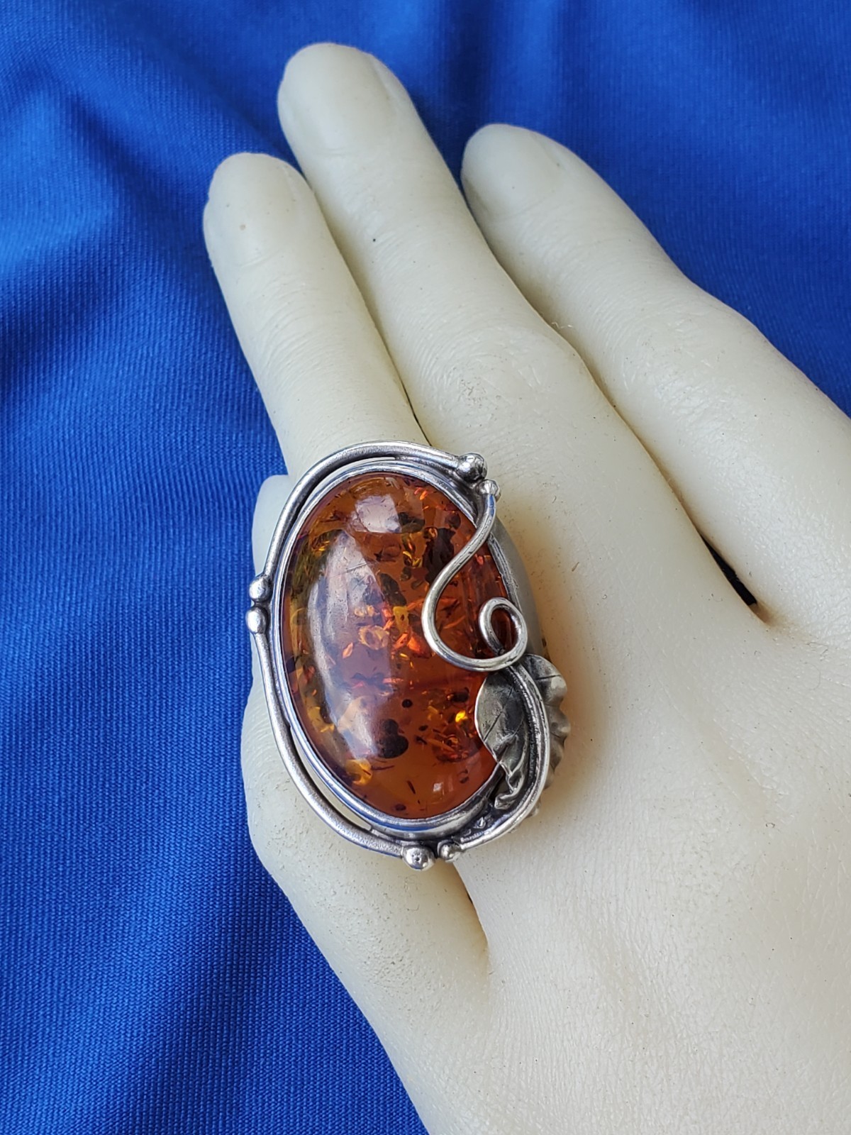 VERY LARGE 14.64 Grams Authentic Baltic Amber Hand made 925 Sterling Silver ring.