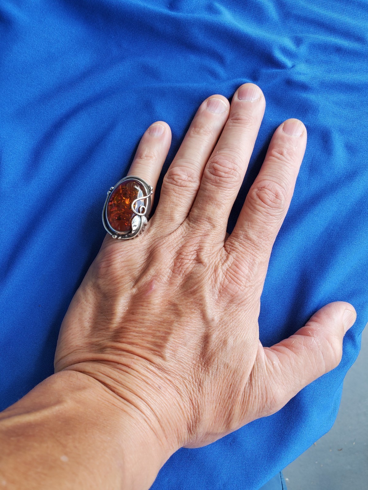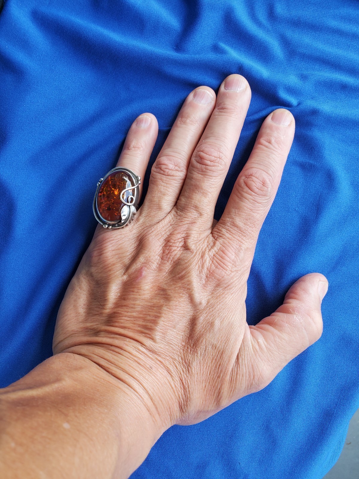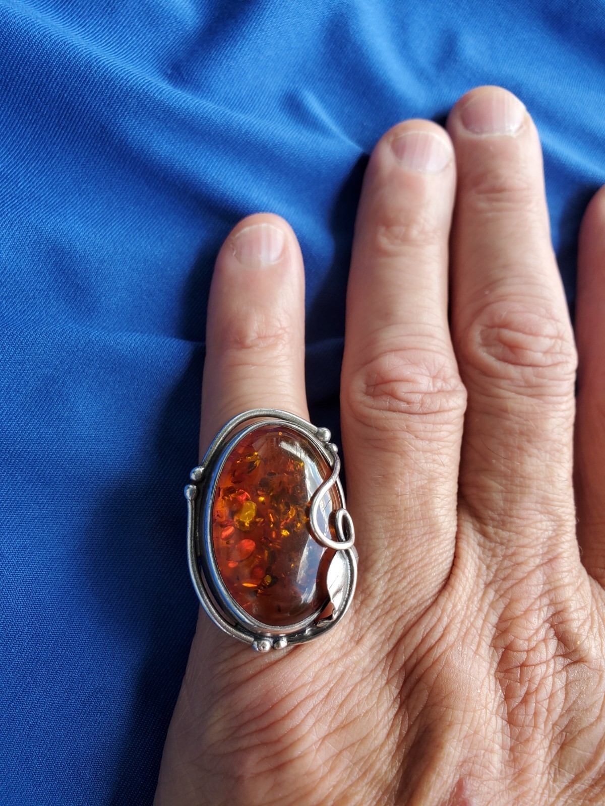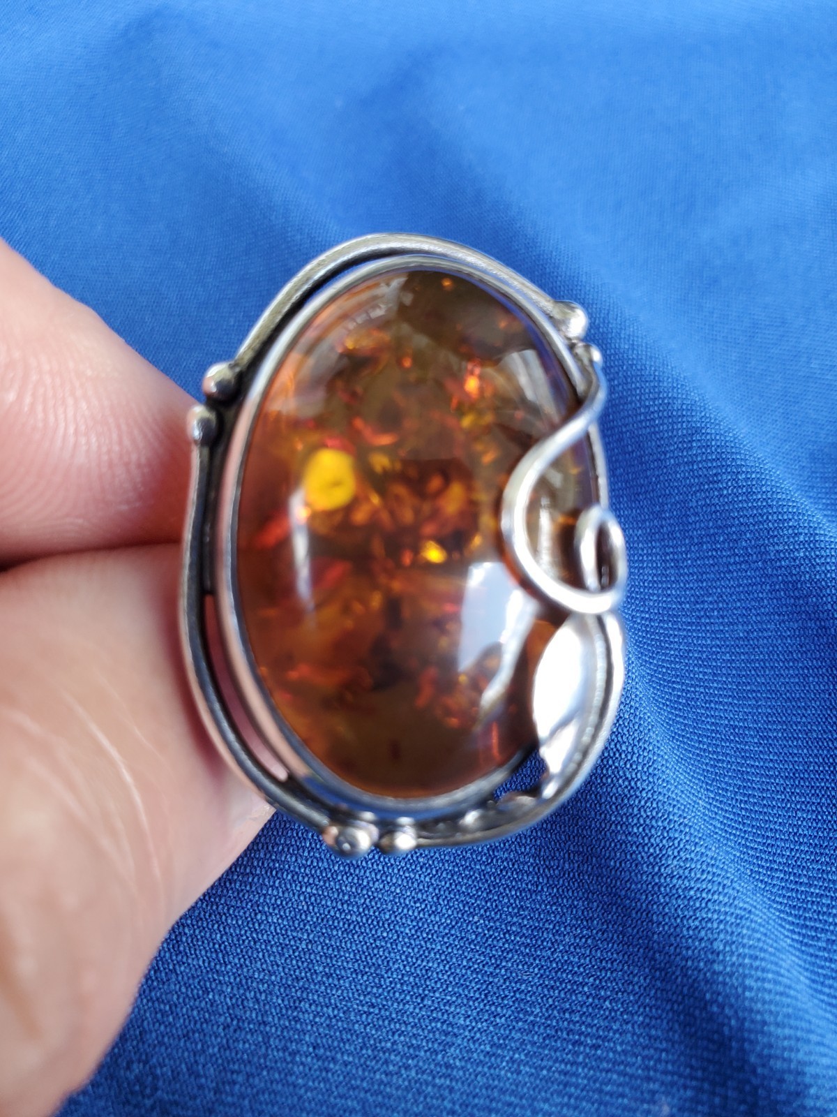 VERY LARGE 14.64 Grams Authentic Baltic Amber Hand made 925 Sterling Silver ring.