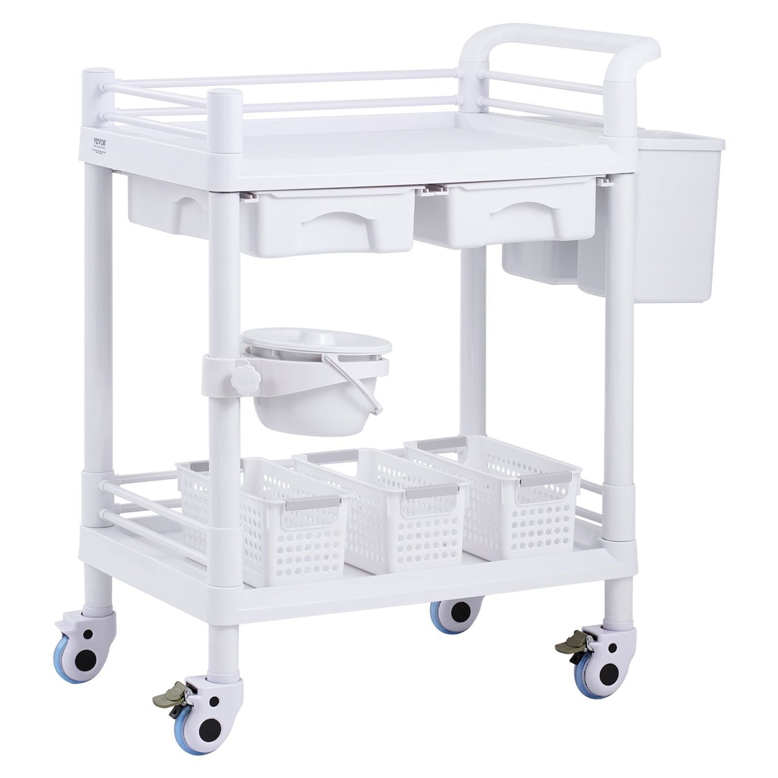 - VEVOR 2 Tiers Lab Carts Mobile Medical Cart 2 Trays 2 Drawers 3 Trash Cans White