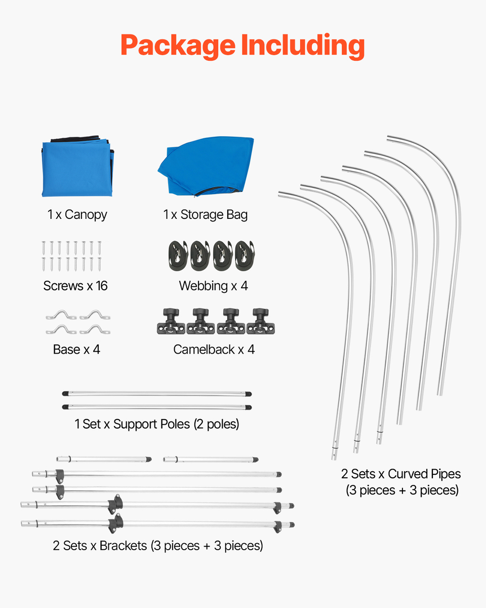 Choose Your Ideal Size: Available in a variety of sizes, including 3 Bow 6'L x(54"-60")W x 46" H. Simply measure your boat’s deck width and pick the awning that fits your boat.