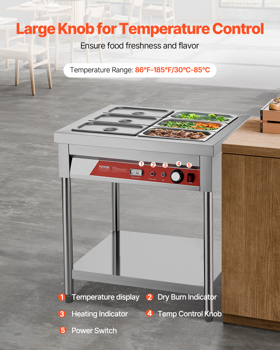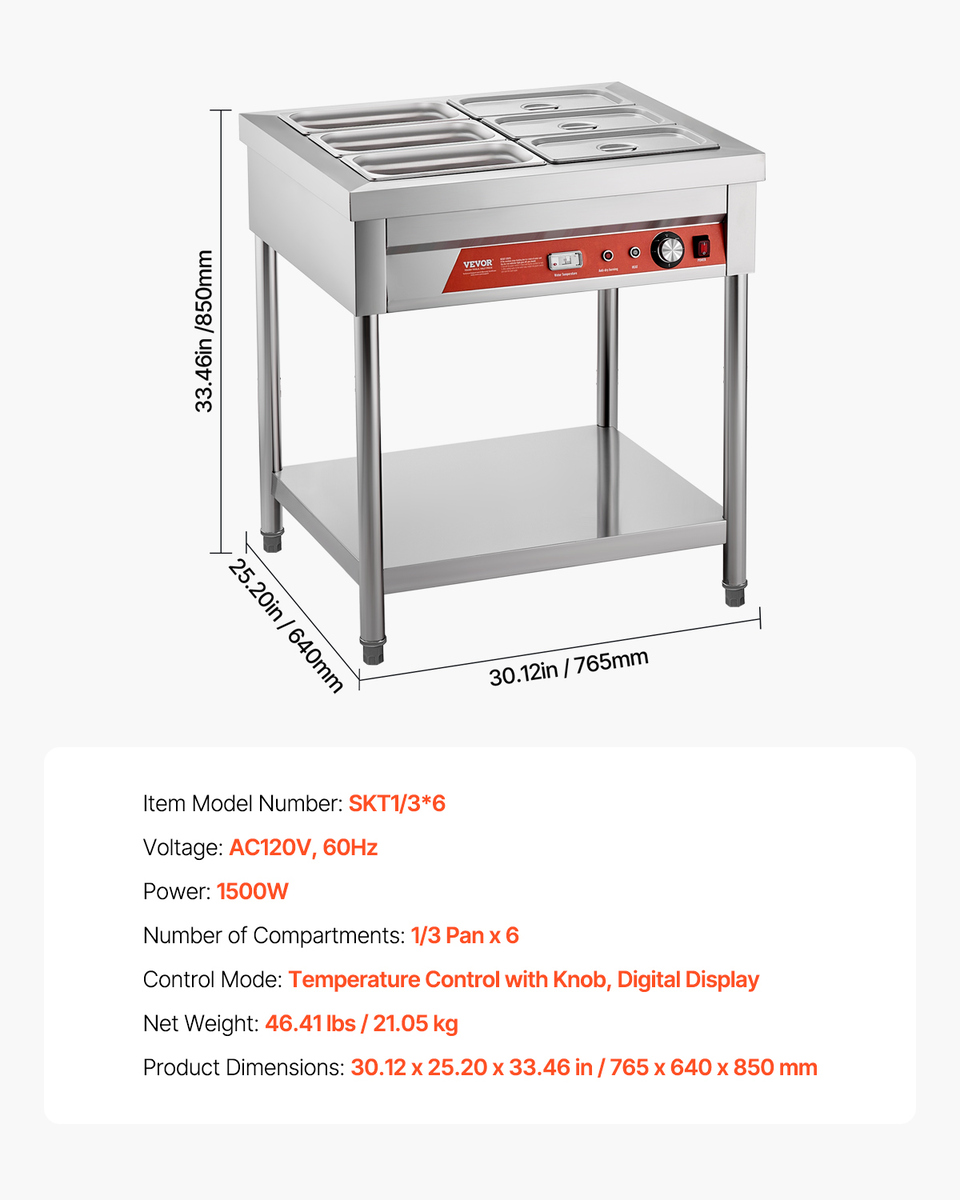 - VEVOR 6-Pan Commercial Food Warmer, 6 x 1/3 Pans Electric Steam Table, 1500W