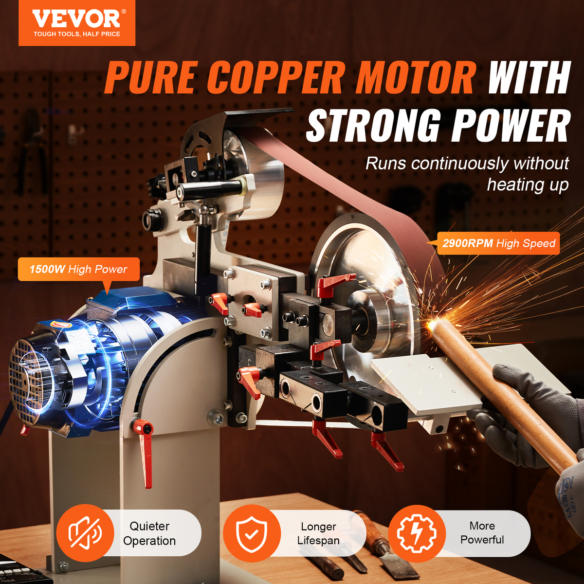 Powerful Performance: Equipped with a 1500W pure copper motor running at 2900 rpm, the VEVOR belt grinder sander delivers superior grinding power, quieter operation, and enhanced durability compared to ordinary motors. Enjoy smooth running and stable tracking without worrying about overheating.