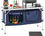 - VEVOR Camping Kitchen Table, Folding Cooking Table, 3 Adjustable Height, Blue