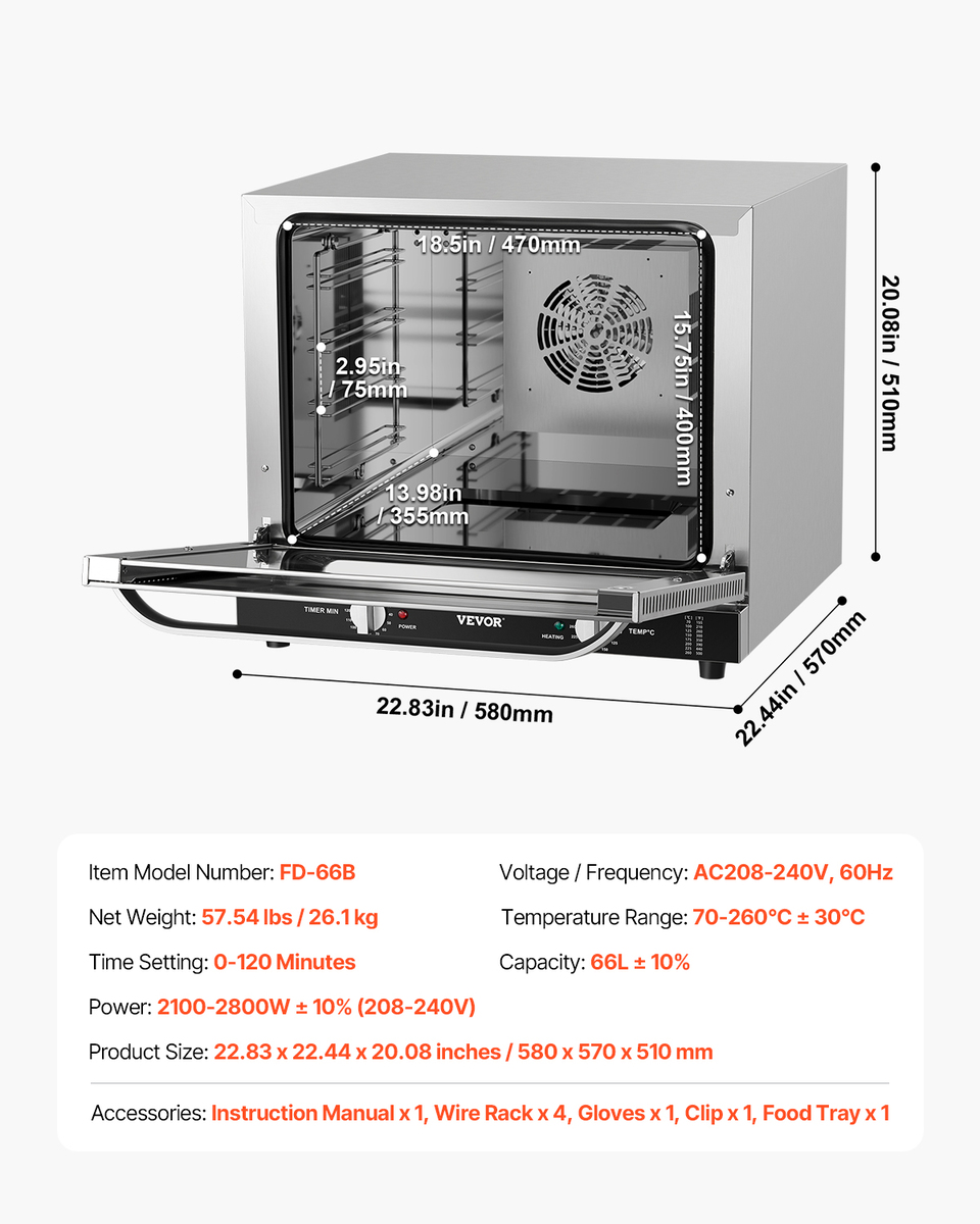 - VEVOR Commercial Countertop Oven, 66L 4-Tier Toaster Oven, 2800W Electric Oven