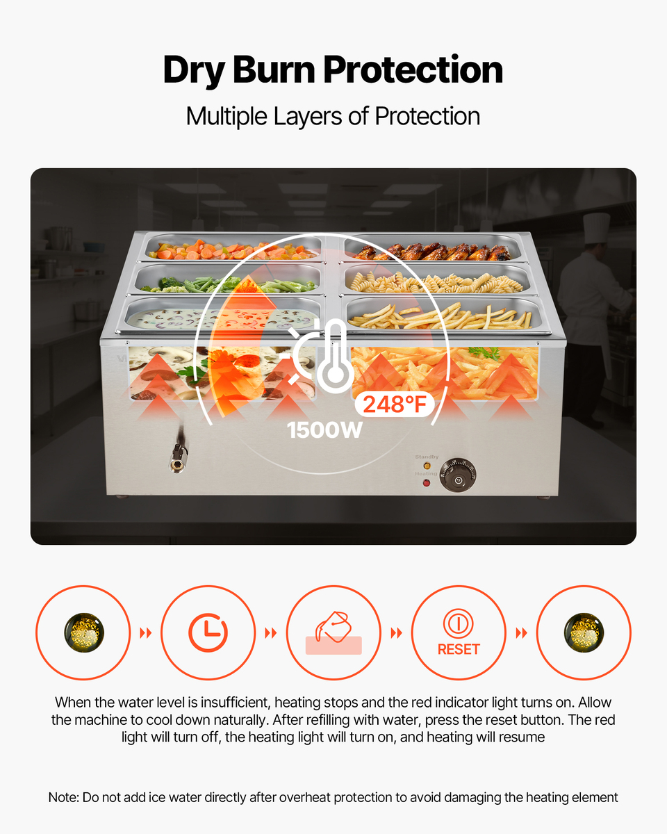 - VEVOR Commercial Food Warmer, 1500W Electric Stainless Steel Steam Food Warmer