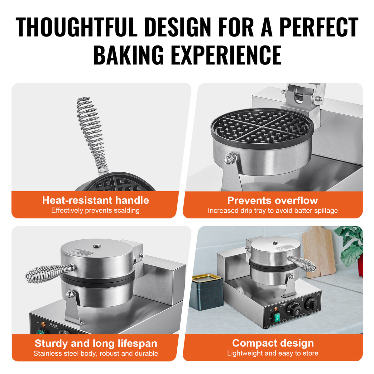 - VEVOR Commercial Waffle Maker, 1230W Round Waffle Baker Machine, Non-Stick